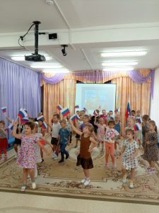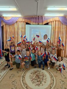 Мы собрались в музыкальном зале, чтобы отпраздновать один из главных символов нашей страны — Государственный флаг России.