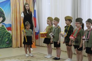 Каждая группа представила один из родов войск Вооружённых Сил Российской Федерации: ребята перевоплотились в моряков, десантников, пограничников, лётчиков и других защитников Отечества.
