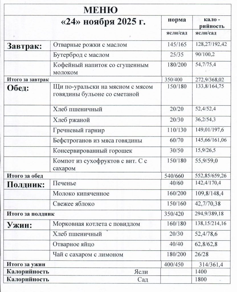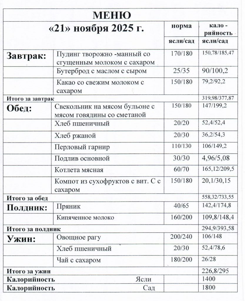Питание детей в детском саду формируется с учетом основного организованного меню, в котором соблюдены все санитарные правила, нормы продуктов и суточной энергетической потребности для каждой возрастной категории.